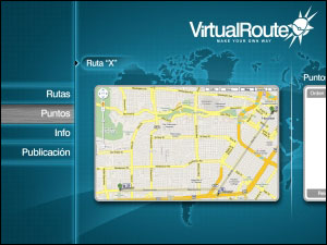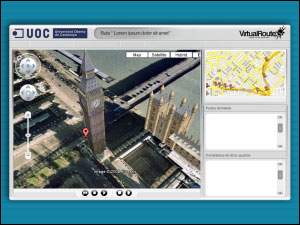 Visrtual Route es una aplicación interactiva táctil para las pantallas del laboratorio de la Universidad Oberta de Cataluña, en Barcelona y una aplicación web que puede verse online desde cualquier navegador web.