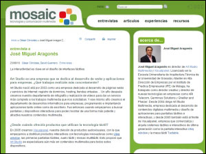 La prestigiosa revista Mosaic Tecnologías y Comunicación Multimedia, de la Universidad Oberta de Catalunya, que recoge experiencias de profesionales del sector a través de artículos y entrevistas, dedica una entrevista a José Miguel Aragonés.