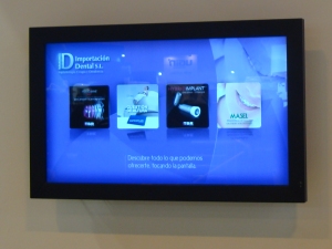 Art Studio Multimedia ha realizado los contenidos interactivos para la empresa Importación Dental S.L., contenidos que se han mostrado en una pantalla táctil de 42" proporcionada por la empresa de tecnología interactiva Visualpanel. Los visitantes con un toque de mano pudieron pasar los distintos slides de la aplicación multimedia.